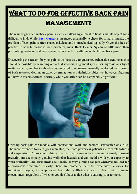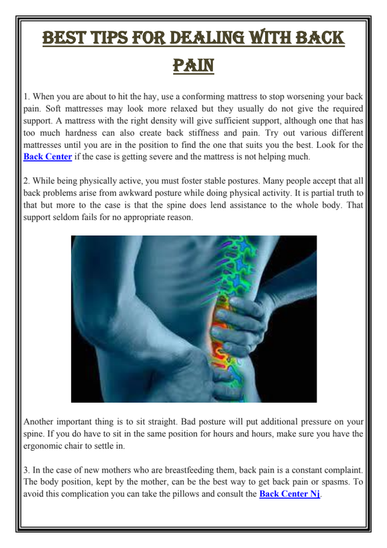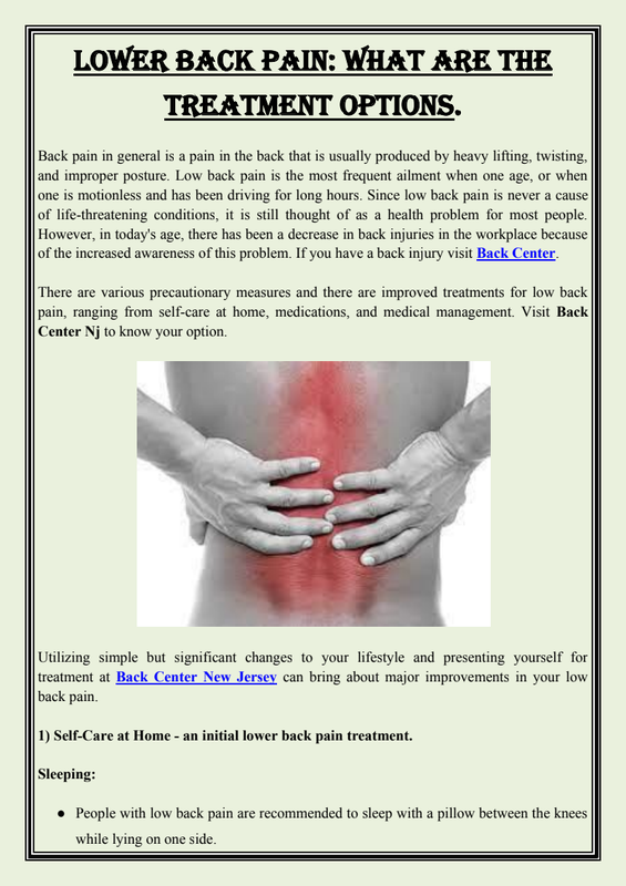 In cases, where an individual’s back pain is taking a worse situation. And he/she has not taken an initial important step in the starting then the problem can be overcome to some reach. After all, back pain is cured with the help of exercising and resting, and if the person is not getting ease with this process then they are required to take the medical help. And for the best advice and treatment, you have to visit the Back Center New Jersey. The only center where the patients are treated with extra care and hope.