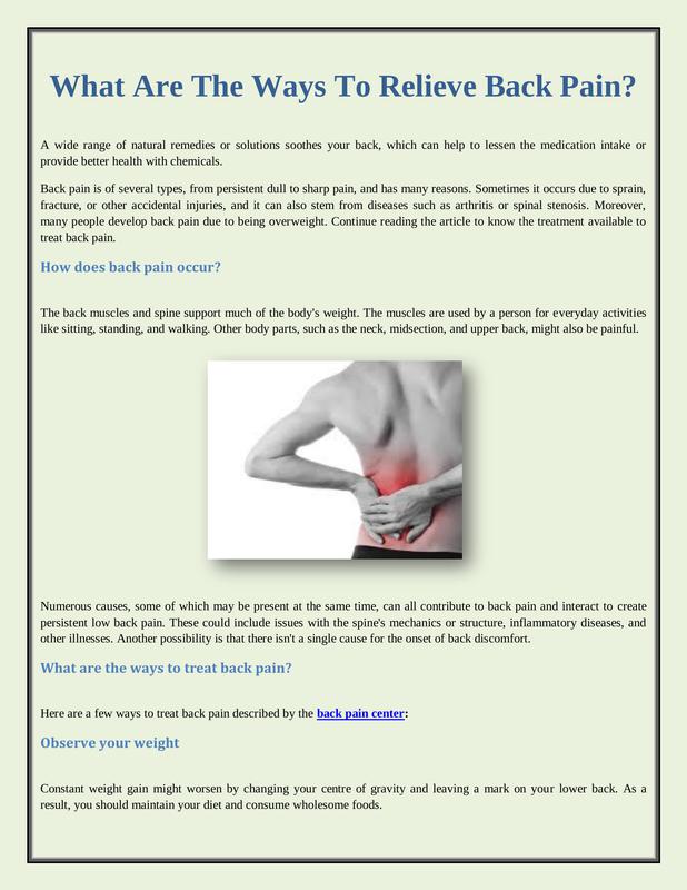 There is a team of doctors who work together with their specialization in this field, comprised of their extensive knowledge and proficient skills in treating back pain. This team of pain specialists, orthopedic surgeons, researchers, physical therapists, and physiatrists work closely with each other to understand and solve complex back-related issues. This union of diverse expertise lets these doctors find new complete therapy methods and more in-depth learning about back pain administration. To know more about their expertise and knowledge, visit a back pain center.