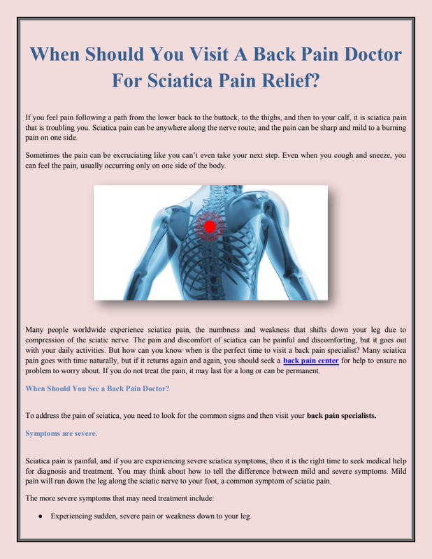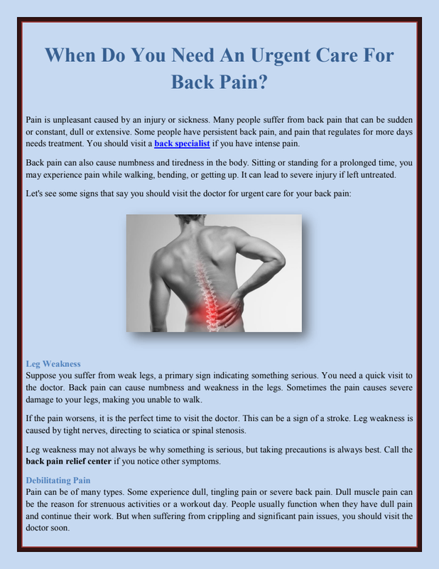 If you are experiencing any factors mentioned above, consult a back pain doctor to take his advice for effective treatment.