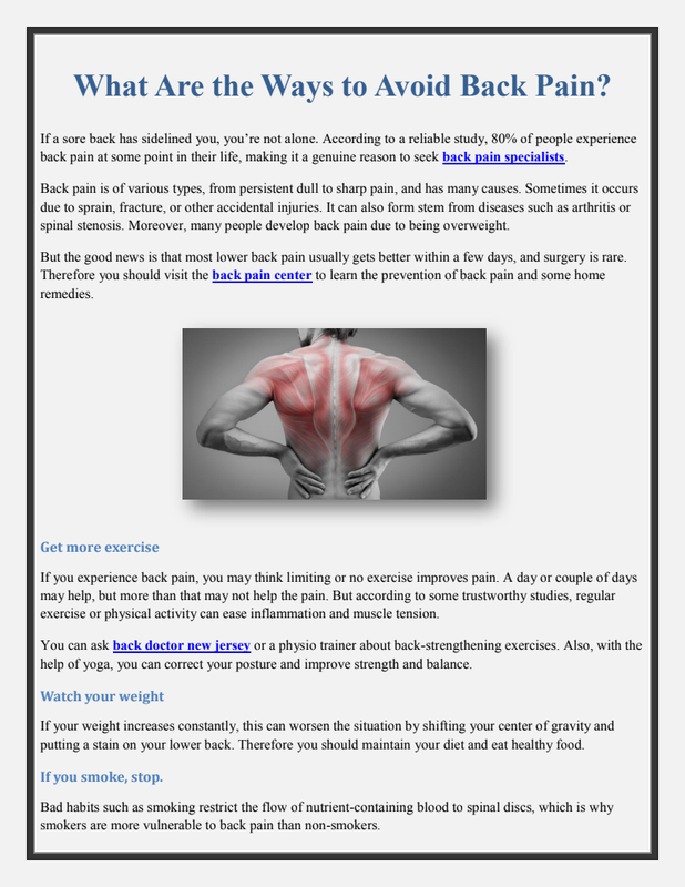 You need to visit a back doctor new jersey, soon when you address the pain. Dont ignore it, as it may lead to further issues after some time.